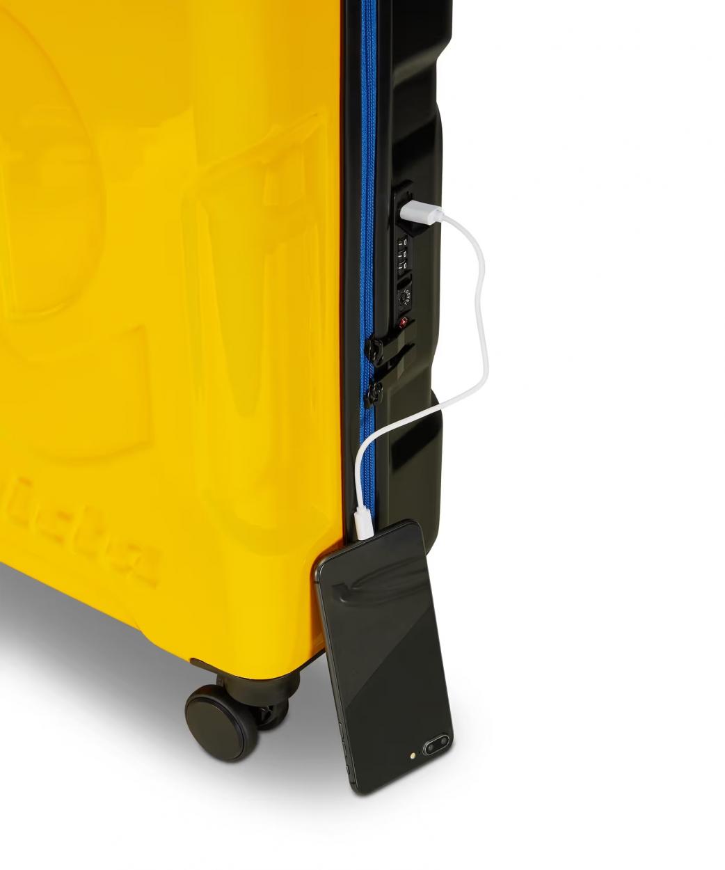 ALTRE CARATTERISTICHE: Porta USB con taschino interno per powerbank. Chiusura integrata a combinazione con sistema TSA. Maniglia telescopica con doppia barra e asta regolabile. Doppie ruote girevoli 360°. Etichetta Invicta portanome amovibile.